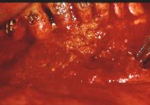 - une importante voussure de toute la table osseuse vestibulaire s’étendant de 33 à 47.