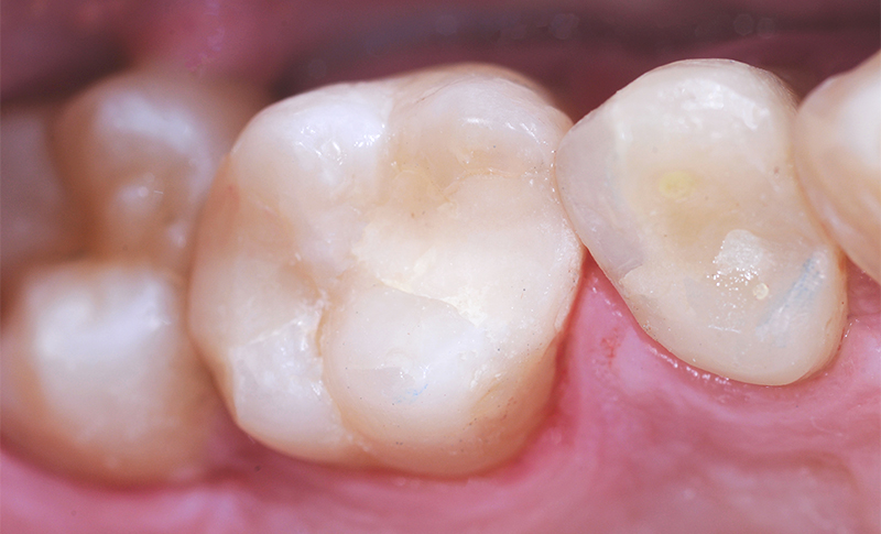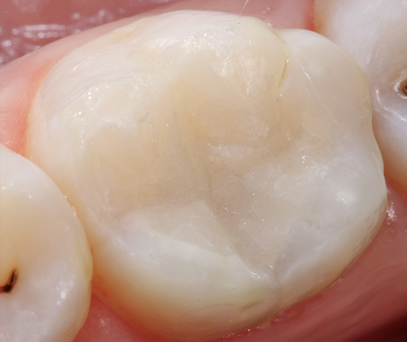 Fig. 05 : restauration de classe I en verre hybride au moyen d’EQUIA Forte (GC), juste après la mise en place.