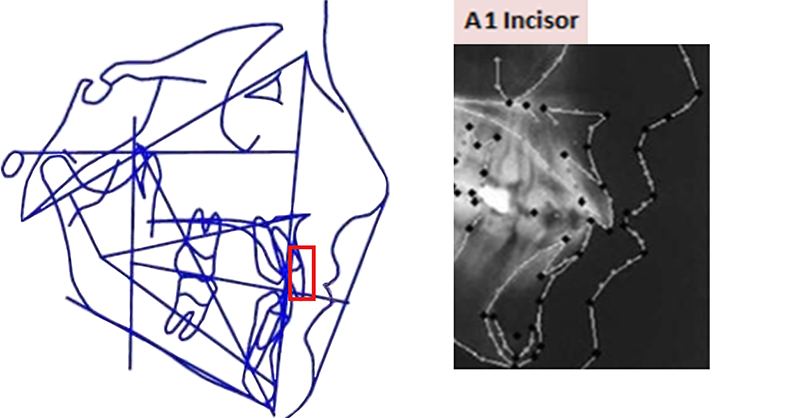 Fig. 05 : le point A, le plus postérieur de l’image de la concavité antérieur du prémaxillaire.