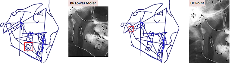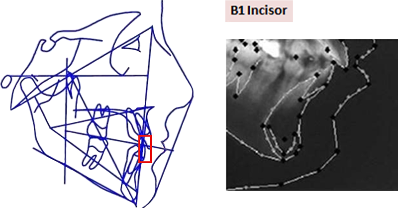 Fig. 08 : le point B, le plus postérieur de l’image de la concavité antérieure de la symphyse mentonnière.