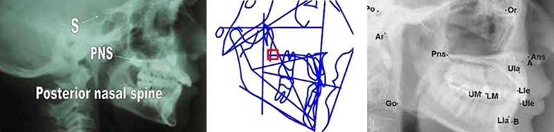 • PNS (aussi nommé ENP pour point Epine Nasale Postérieure) : indique le point le plus postérieur de l’image du palais secondaire.