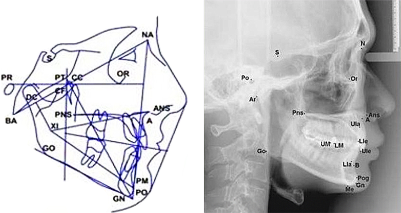 Fig. 01 : points céphalométriques réalisés avec le logiciel Cephio.
