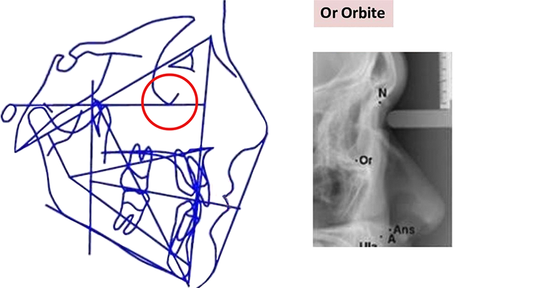 • Or (qui signifie Orbital) : indique le point le plus inférieur de l’image du rebord externe de l’orbite.