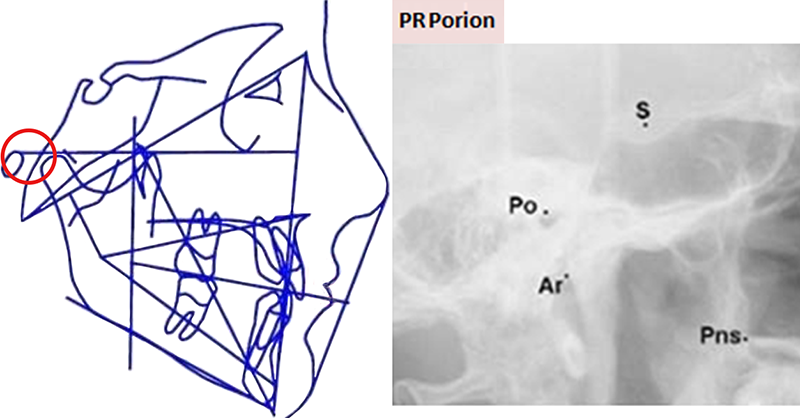 • Pr (qui signifie Prosthion) : indique le point le plus antérieur de l’image des procès alvéolaires supérieurs, entre les deux incisives centrales.