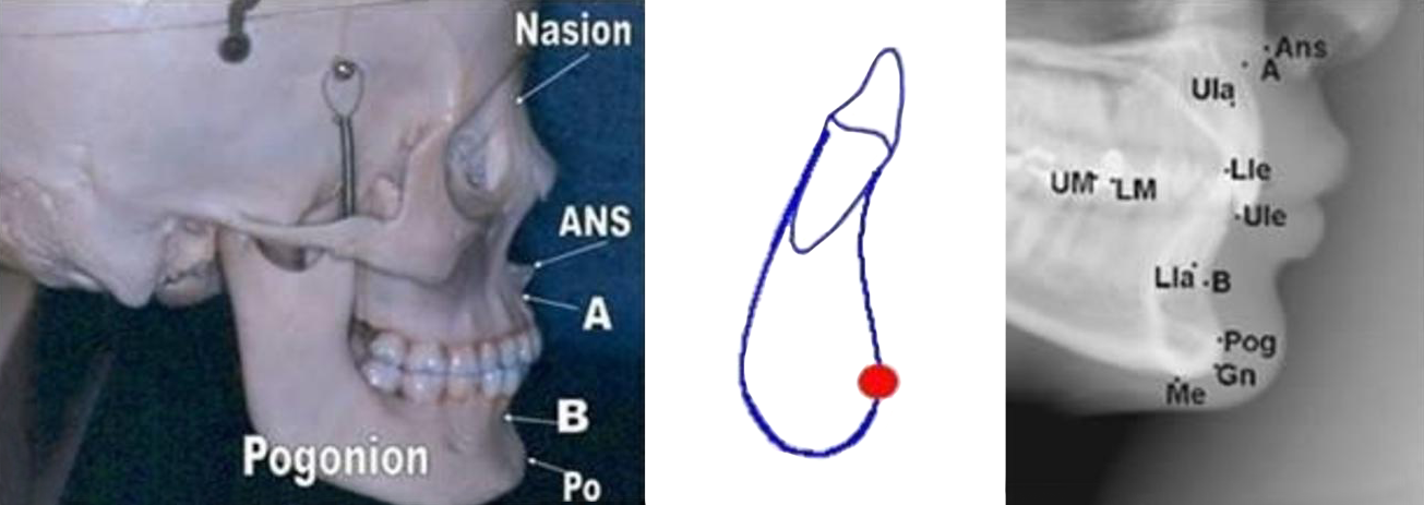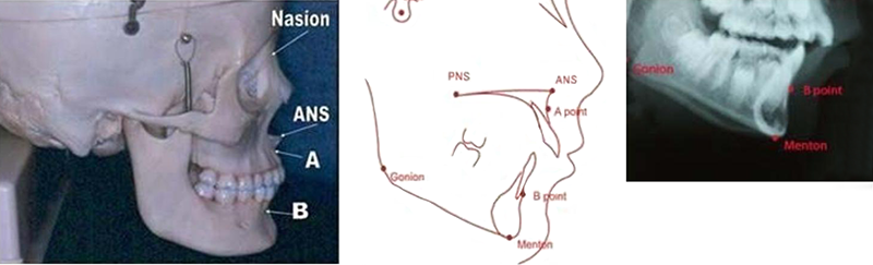 • B (de DOWNS) : indique le point le plus postérieur de l’image de la concavité antérieure de la symphyse mentonnière.