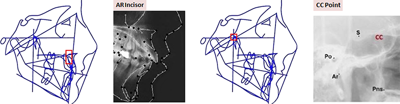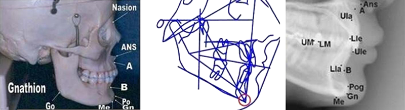 • GnCC (Gnathion Céphalométrique Construit) : indique le point situé à l’intersection du plan facial et du plan mandibulaire de DOWNS.