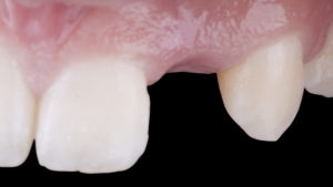 Le bridge cantilever, c’est-à-dire un bridge collé sur une ailette unique, permet de remplacer une incisive sans appui osseux et donc sans contrainte de croissance. Cette technique, proposée en alternative transitoire au départ, semble faire parfaitement ses preuves et devient même la solution de choix dans cette situation clinique comme l’ont montré les travaux de Mathias Kern et de Gil Tirlet et Jean-Pierre Attal. Le taux d’échec augmente d’ailleurs avec la multiplication des ailettes d’appui car les incisives centrales et les canines ne travaillent pas dans les même directions, ce qui aboutit souvent au décollement d’une des ailettes. Il peut être intéressant de demander à l’orthodontiste de ménager si possible un léger espace en regard de la future facette pour optimiser l’épaisseur de la céramique et préparer à minima la face palatine.