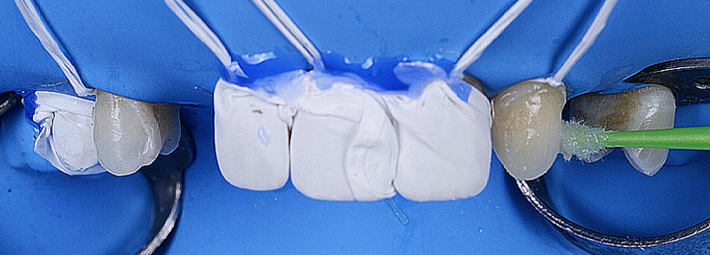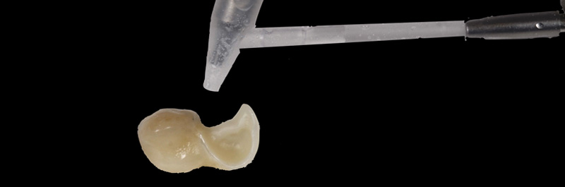 Fig. 10 : nettoyage des surfaces et décontamination des ailettes en zircone pendant 10 secondes (KATANA™ Cleaner – Kuraray).