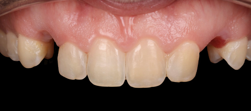 Notre objectif est donc de remplacer les 2 dents absentes et de rééquilibrer les formes des 2 incisives latérales.