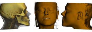 Reconstructions 3D à partir d’une acquisition tomodensitométrique (TDM) unique (basse dose) des éléments anatomiques maxillo-faciaux sous différentes vues, isolés ou associés, avec plus ou moins de transparence et de profondeur.