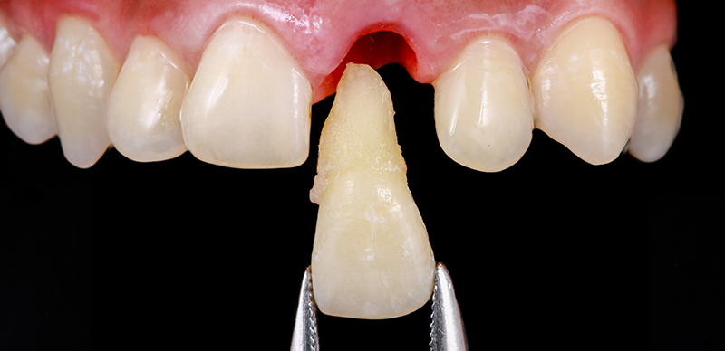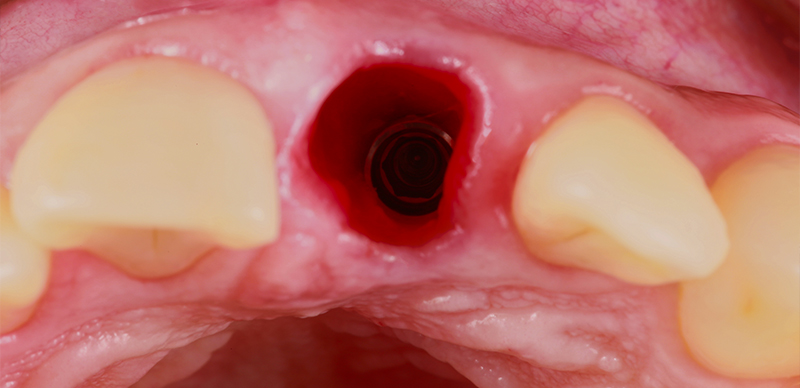 Un placement d’implant immédiat réussi dans des alvéoles fraîchement extraites peut être réalisé à condition que certains critères soient respectés, tels qu’une stabilité primaire optimale et une position correcte de l’implant. Une méthode de traitement courante qui implique l’utilisation de dents en résine acrylique préfabriquées adaptées à la situation buccale et fixées à un pilier provisoire pendant la chirurgie.