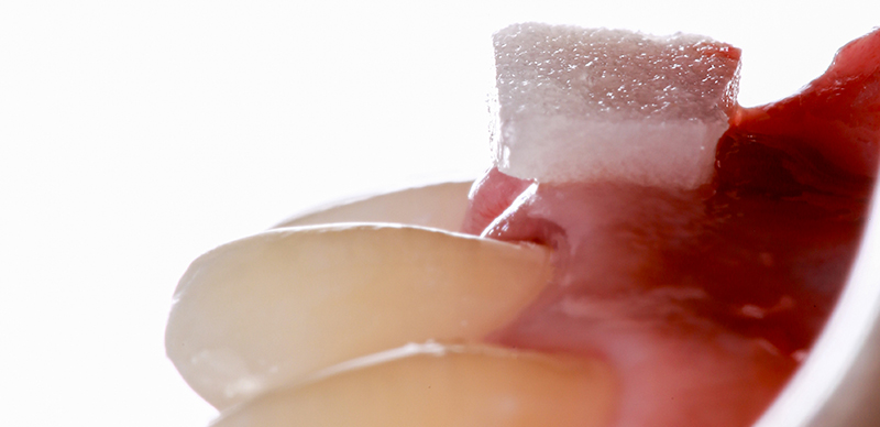 Fig. 09 : pour l’augmentation du volume gingival vestibulaire, une matrice de collagène dérivée du derme porcin a été insérée.