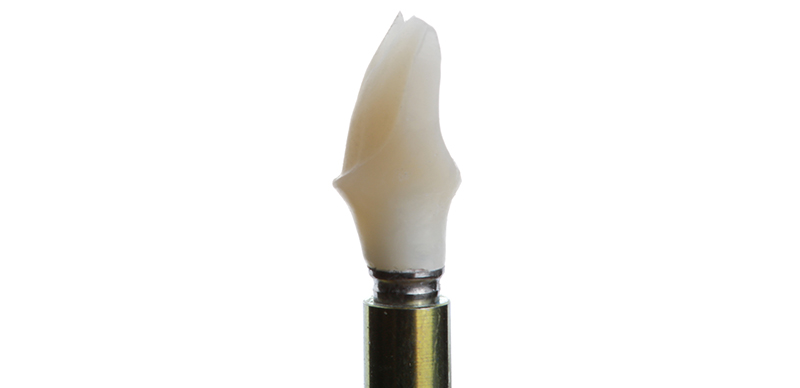 Fig. 10 : pilier hybride. La sous-structure esthétique fraisée en composite nano-hybride hautement rempli est collée sur le pilier de scan.