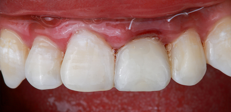 Fig. 08 : le site d’extraction de type 1 a rapidement montré un certain effondrement gingival.