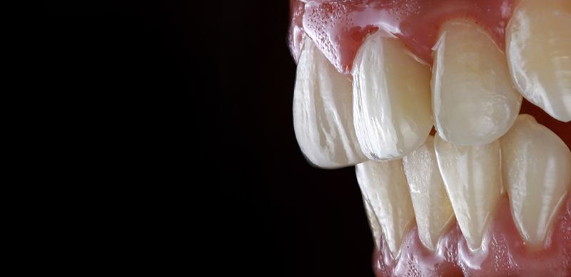 Ces informations ont été transférées au logiciel de conception CAD/CAM (exocad, Align Technology), où la sous-structure pour la restauration provisoire a été conçue en tenant compte des zones de contour critiques. À cet effet, les modèles post-opératoires produits ont été utilisés comme support. La sous-structure a été conçue et fraisée en utilisant la technique CAD/CAM. Celle-ci a été façonnée pour restaurer et maintenir la ligne gingivale dans sa position d’origine.
