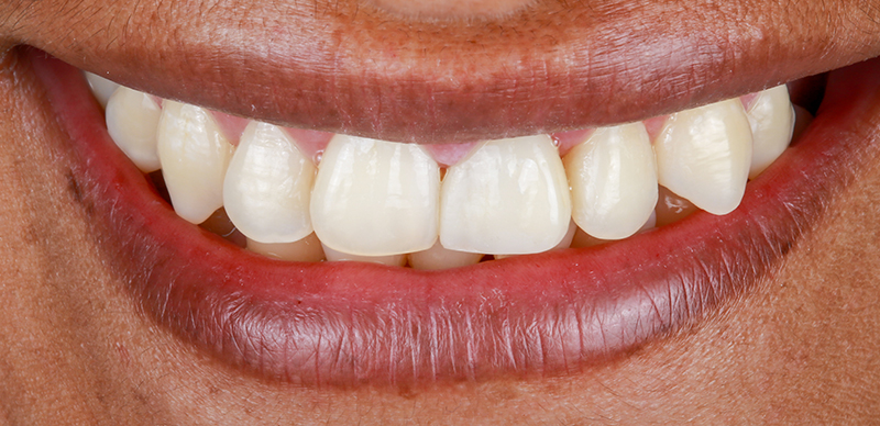 La patiente était très satisfaite du résultat esthétique. Une facette composite directe a été superposée pour restaurer la dent 21, obtenant un résultat hautement esthétique, considérant que reproduire la forme et la couleur d’une incisive centrale dans sa dent contralatérale est toujours un défi.