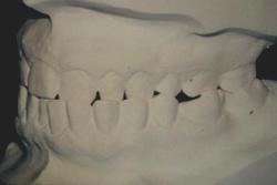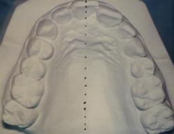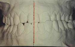 Elle présente, en effet, une occlusion inverse unilatérale gauche (photo 2) avec absence d’une prémolaire, associe a une déviation du milieu maxillaire par rapport au vermillon de la lèvre supérieure de 3mm sur la gauche. La patiente a déjà consulté des chirurgiens maxillo-facial dont le plan de traitement fut soit une expansion palatine soit un Lefort 1 de rotation maxillaire afin de permettre de recoordonner les arcades dentaires. Elle décide alors de s’orienter vers une solution non chirurgicale.