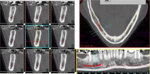 – le trajet du canal, qui peut soit être totalement lingual sur tout son trajet offrant la possibilité d’implanter en dehors de lui, en vestibulaire;