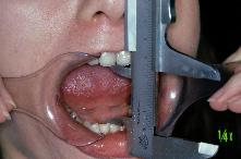 Elle se fait pour les mouvements d’ouverture, de propulsion et de latéralité. Le matériel est constitué d’une simple réglette. Les valeurs normales sont respectivement de 40 mm pour l’ouverture buccale, 10 mm pour les latéralités et la propulsion .