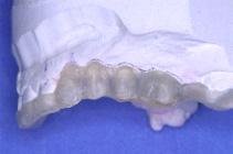 Le laboratoire réalise une cire de diagnostic (WAX UP) de la future prothèse ou comme dans le cas présenté un montage sur articulateur d’une maquette avec des dents du commerce.