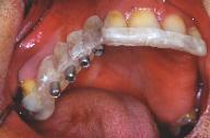 2 guides latéraux dans le cas présent plutôt qu’un seul sur toute l’arcade : en effet lors de la chirurgie un seul guide de molaire à molaire serait de manipulation plus délicate.