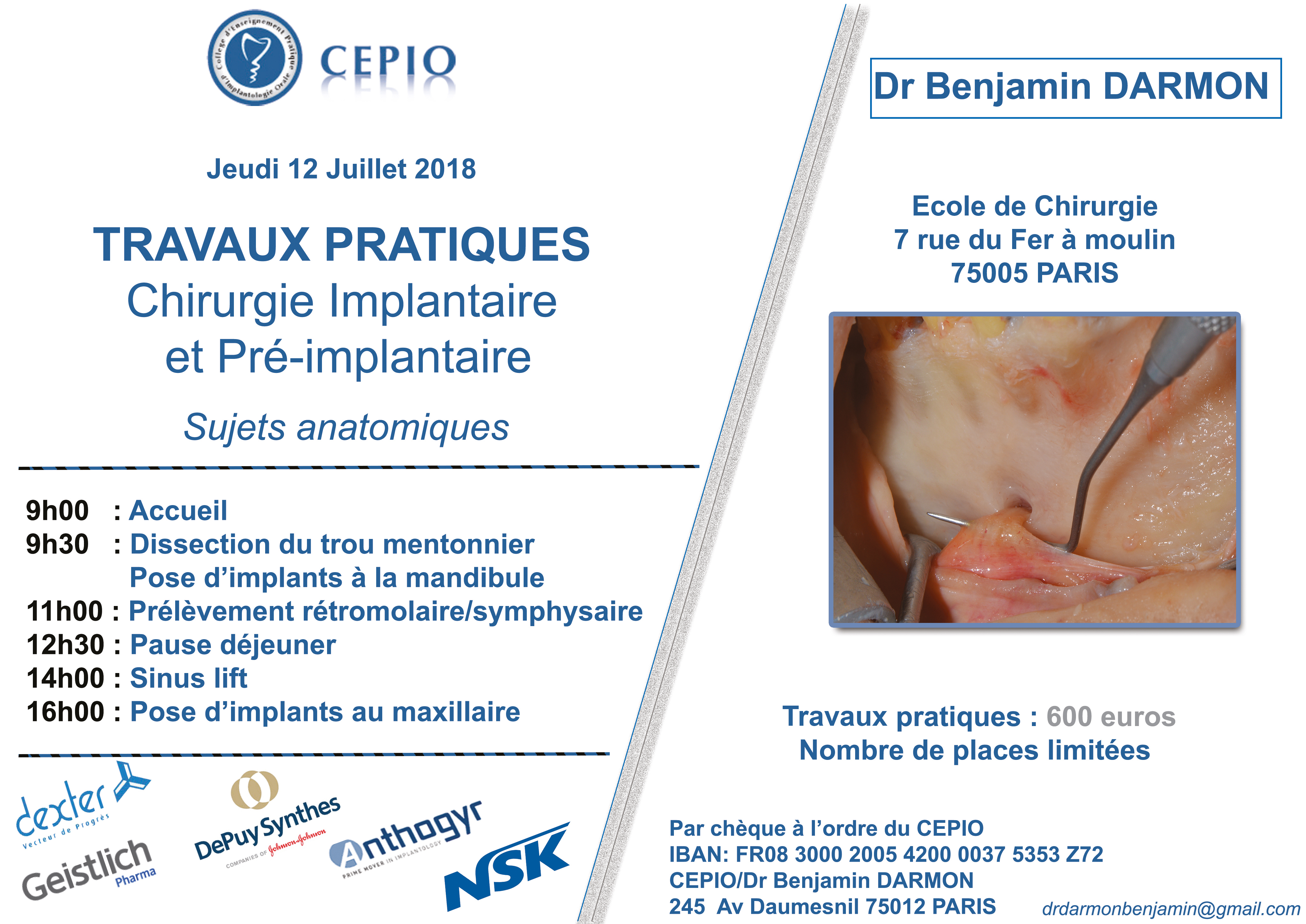 Pour aller plus loin, participez aux Travaux Pratiques Chirurgie Implantaire et Pré-implantaire qui auront lieu le 12 juillet 2018 à Paris sous la direction de Benjamin Darmon.