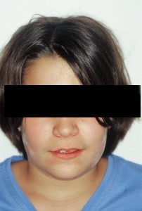 Plan de traitement : interception de 8 mois avec un Quadhelix à bras antérieur , suivi d’un traitement multi bague de courte durée.