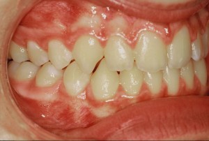 – Endoalvéolie au niveau molaire avec une déformation du maxillaire qui prend la forme en V