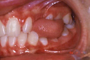 L’interposition linguale est souvent présente avec une béance antérieure ou latérale.