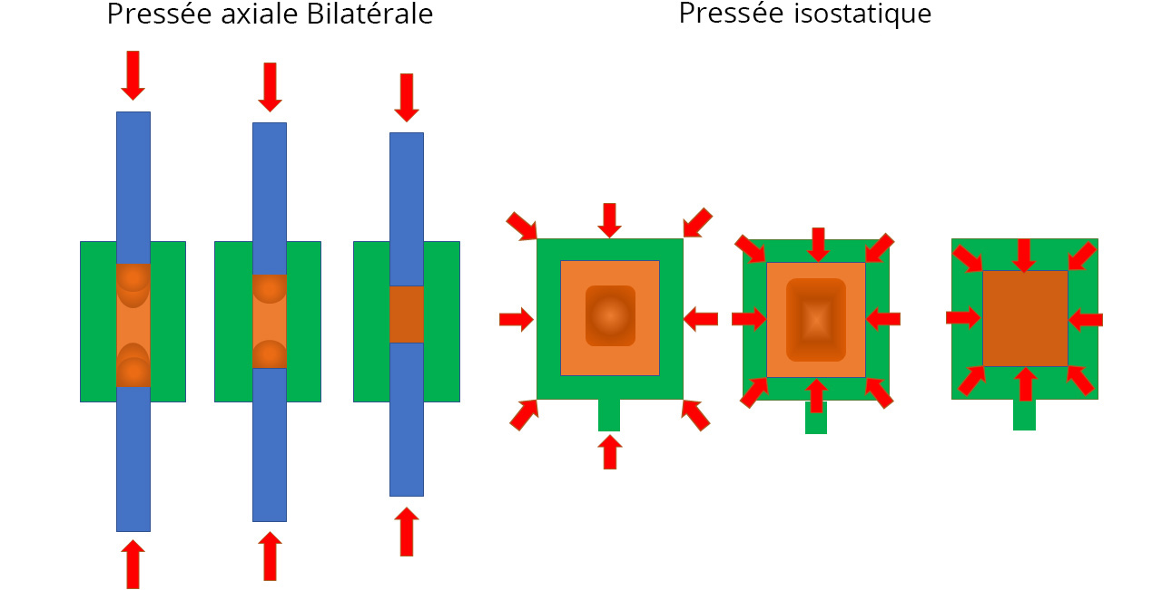 Il existe deux procédés pour la réalisation des disques : la pressée axiale et la pressée isostatique. Le procédé différera en fonction des indications de réalisation.
