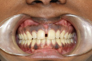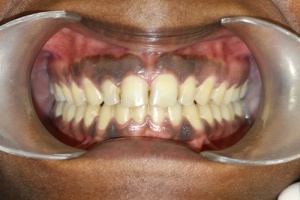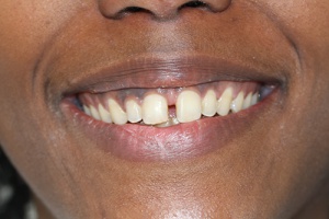 Dans le cas présenté ici, le diastème a été fermé sans pose d’appareillage fixe ou de collage sur les dents et les facettes posées sans aucune préparation amélaire. Ceci est rendu possible par l’association des différentes techniques dont nous avons parlés et de la simulation numérique.