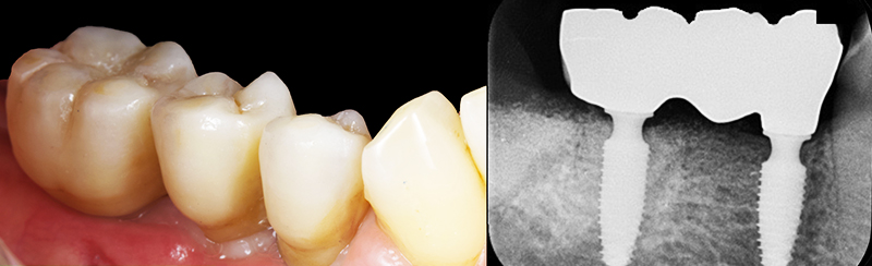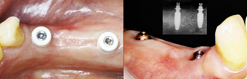 Fig. 05 : prothèse vissée directement sur les MUA intégrés à l’implant. Prothèse : Dr Edouard Cristofari.