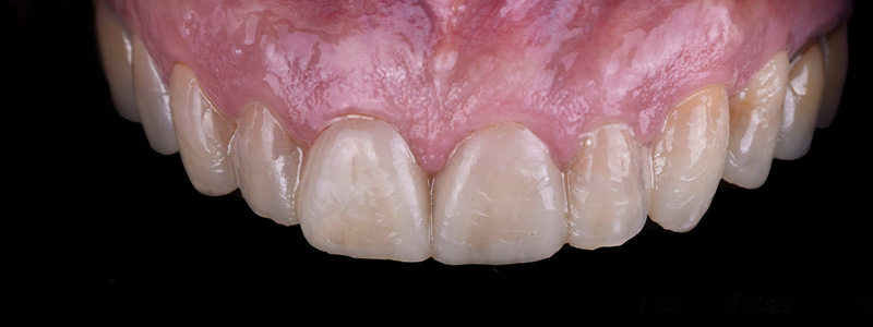 L’élaboration d’un masque en résine permet de valider et de guider le praticien tout au long du traitement. Il rassure le patient, mais aussi toute l’équipe soignante sur le résultat final. C’est un outil indispensable à toute réhabilitation esthétique et fonctionnelle !