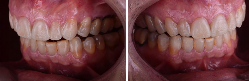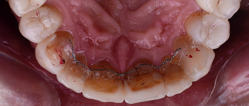 Ce patient ne présente pas d’usure marquée dans les autres secteurs, et l’anamnèse révèle des habitudes nocives telles que le mâchouillement de stylos, de cuillères, de cure-dents, ainsi que l’onychophagie, etc.