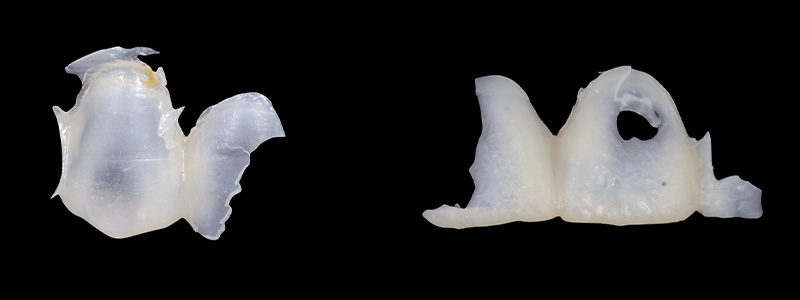 La même clé en silicone est réutilisée pour la fabrication des différentes pièces provisoires.