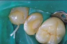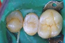 La perte de substance dentaire est limitée à la paroi distale. Les autres parois sont saines, solides et n’ont pas été infiltrées par le processus carieux.