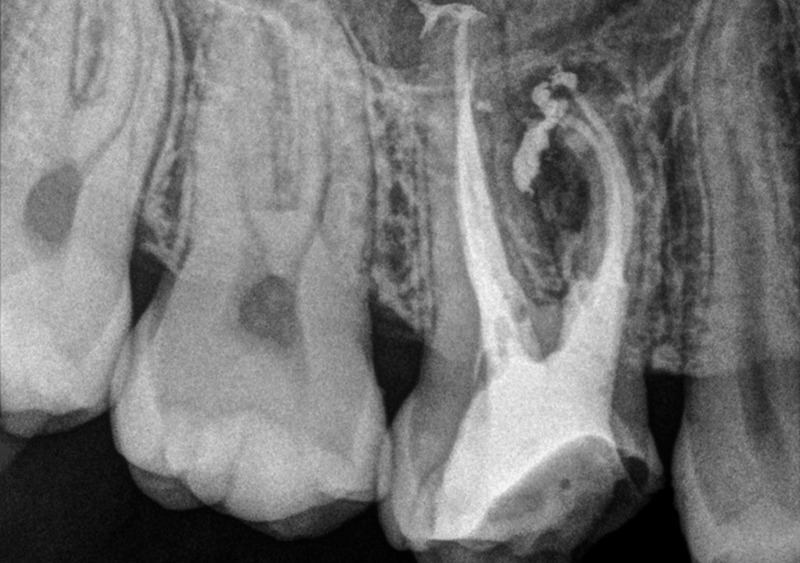 Les canaux principaux ont été désobturés à l’aide de limes de désobturation rotatives, puis de limes manuelles.