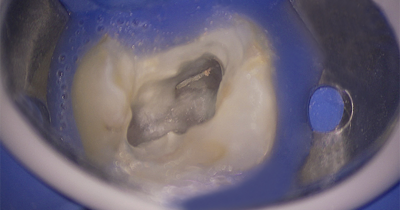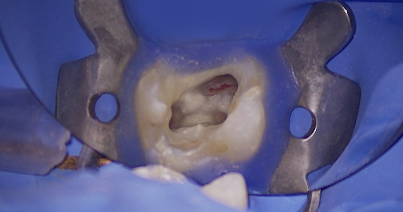 Fig. 04 : situation après dépose du composite occlusal et nettoyage de la cavité d’accès.