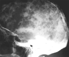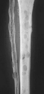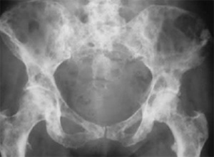 Dans le cadre des processus malins il se produit une stimulation de l’ostéoclastogène par les cellules tumorales source d’ostéolyse. Les travées osseuses sont détruites avec création de lacunes osseuses radiologiquement visibles (lacunes à l’emporte pièce).
