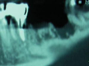 Les images sont assez similaires à celle de l’ostéoradionécrose avec des zones de faible densité. L’examen histologique est parfois recommandé.