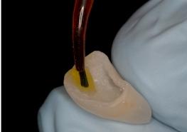Les intrados de facettes sont mordancés à l’acide fluorhydrique pendant 2 à 3 minutes. Puis rinçage abondant, séchage à l’air sec.