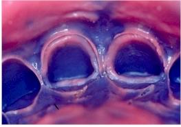 Toujours, afin de faciliter la dépose des excès de colle, on aura légèrement et délicatement enduit la gencive marginale de vaseline sans bien sûr empiéter sur les préparations.