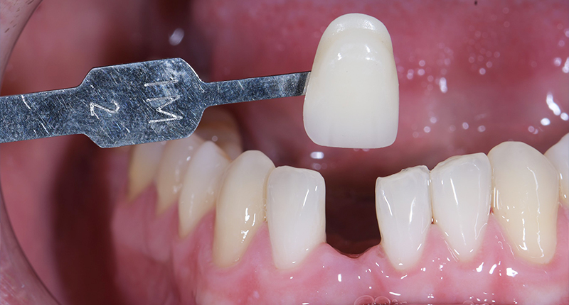 L’aspect esthétique est nettement amélioré. Plusieurs points sont à prendre en compte en amont : la gencive, la situation transitoire pour la maintenir et éviter l’effet « trou noir » entre les dents.