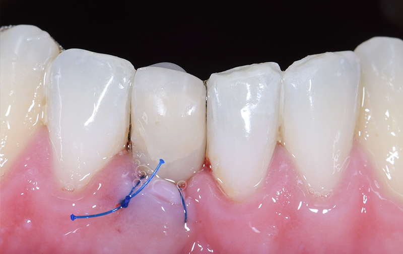 Après la mise en place du bridge, on remarque que la gencive saigne légèrement ce qui est dû aux crampons.