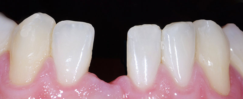 L’aspect esthétique est nettement amélioré. Plusieurs points sont à prendre en compte en amont : la gencive, la situation transitoire pour la maintenir et éviter l’effet « trou noir » entre les dents.