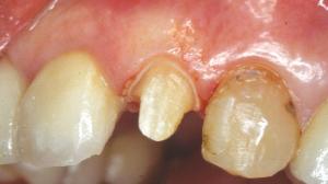 Sur la 22, une préparation coronaire périphérique en vue d’une couronne céramo-céramique a été réalisée.