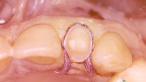 La fraise congé permet de franchir les points de contact en restant au niveau du sommet de la papille gingivale. La fraise boule trace ensuite un sillon en palatin en restant entre le cingulum et le bord libre. Le contact en occlusion avec les dents du bas se situe plus apicalement.
