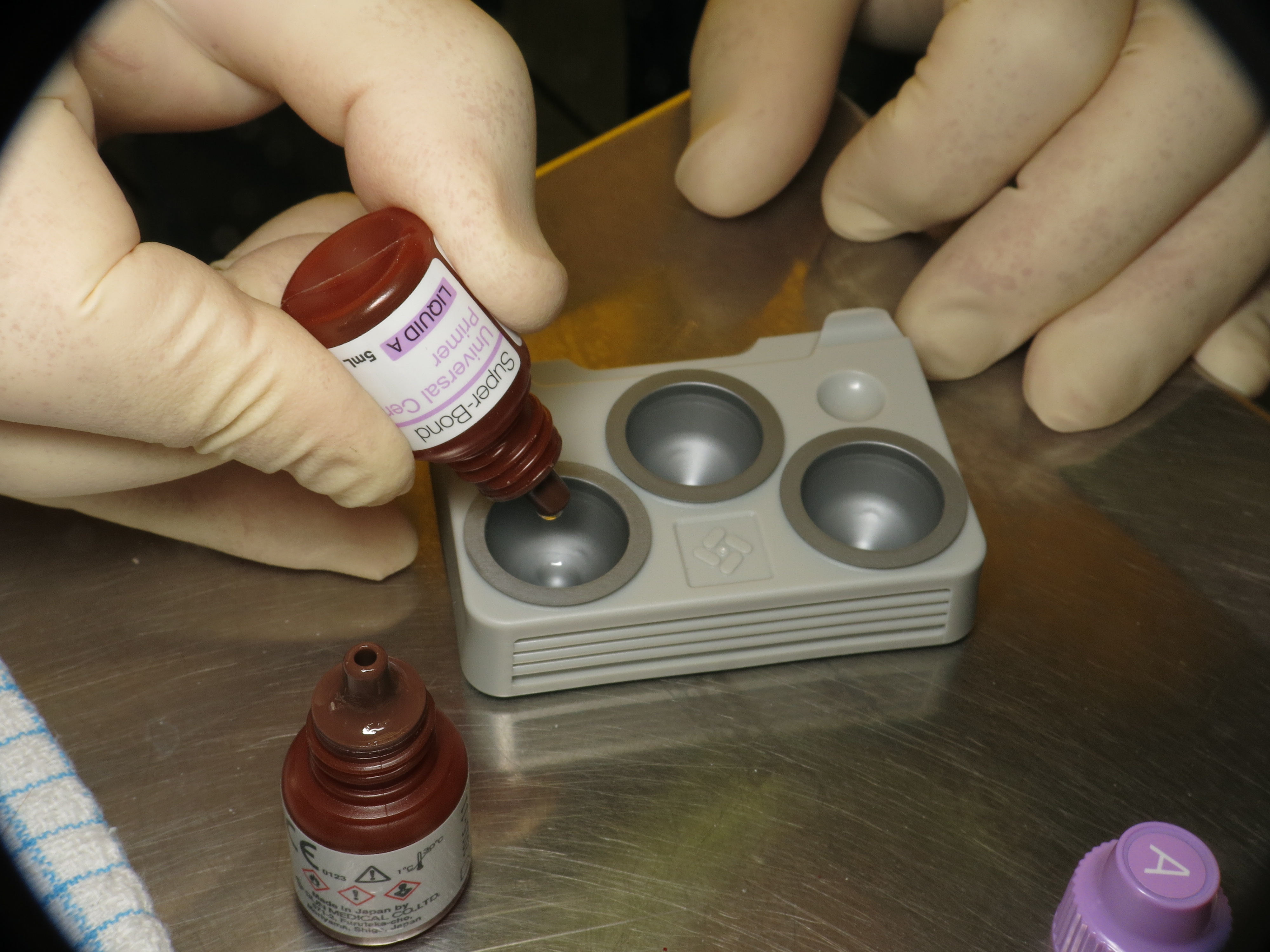 Collage de la pièce prothétique au Super Bond® de GENERIQUE INTERNATIONAL