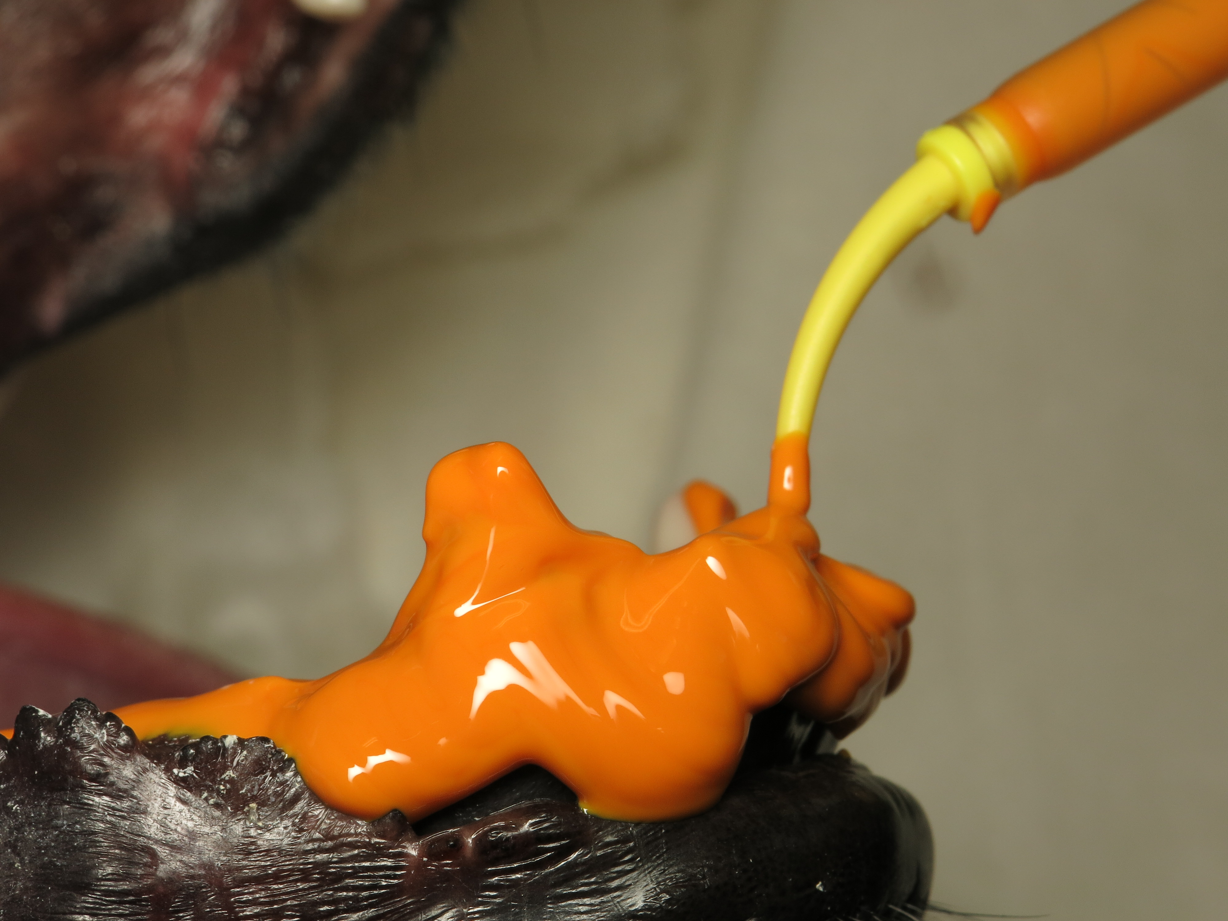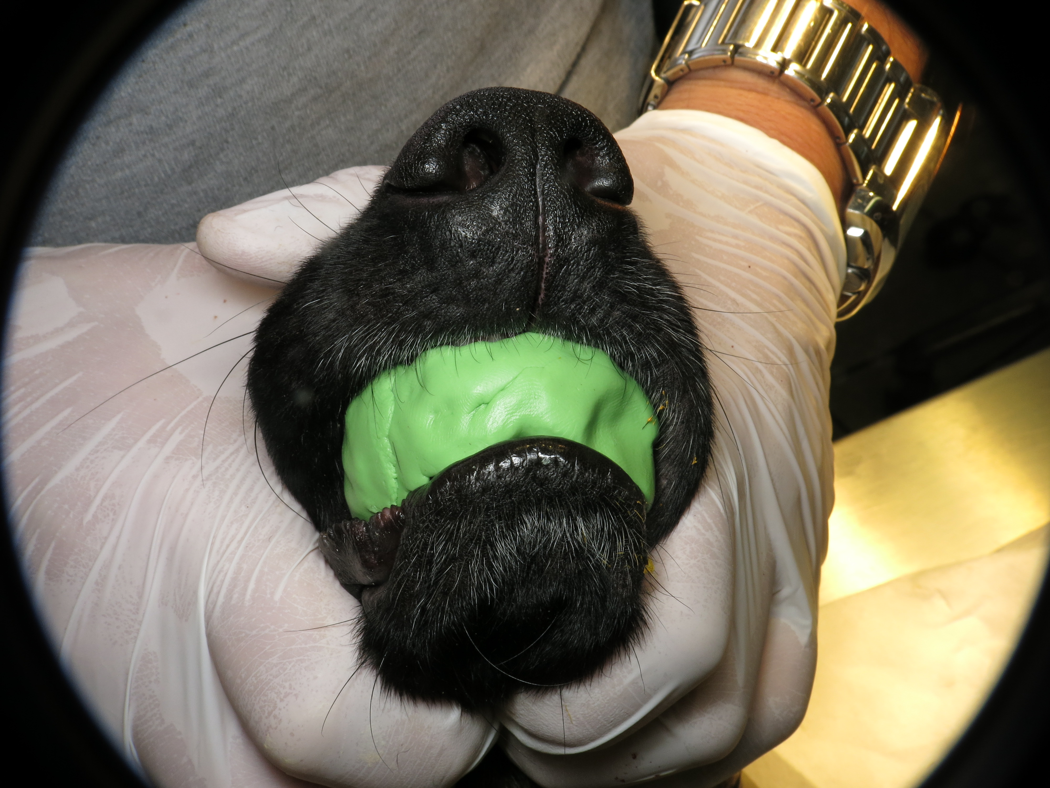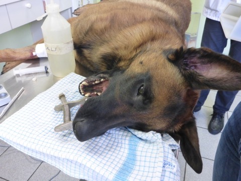 Réalisation du « mordu d’occlusion » assez complexe sur un chien anesthésié totalement !