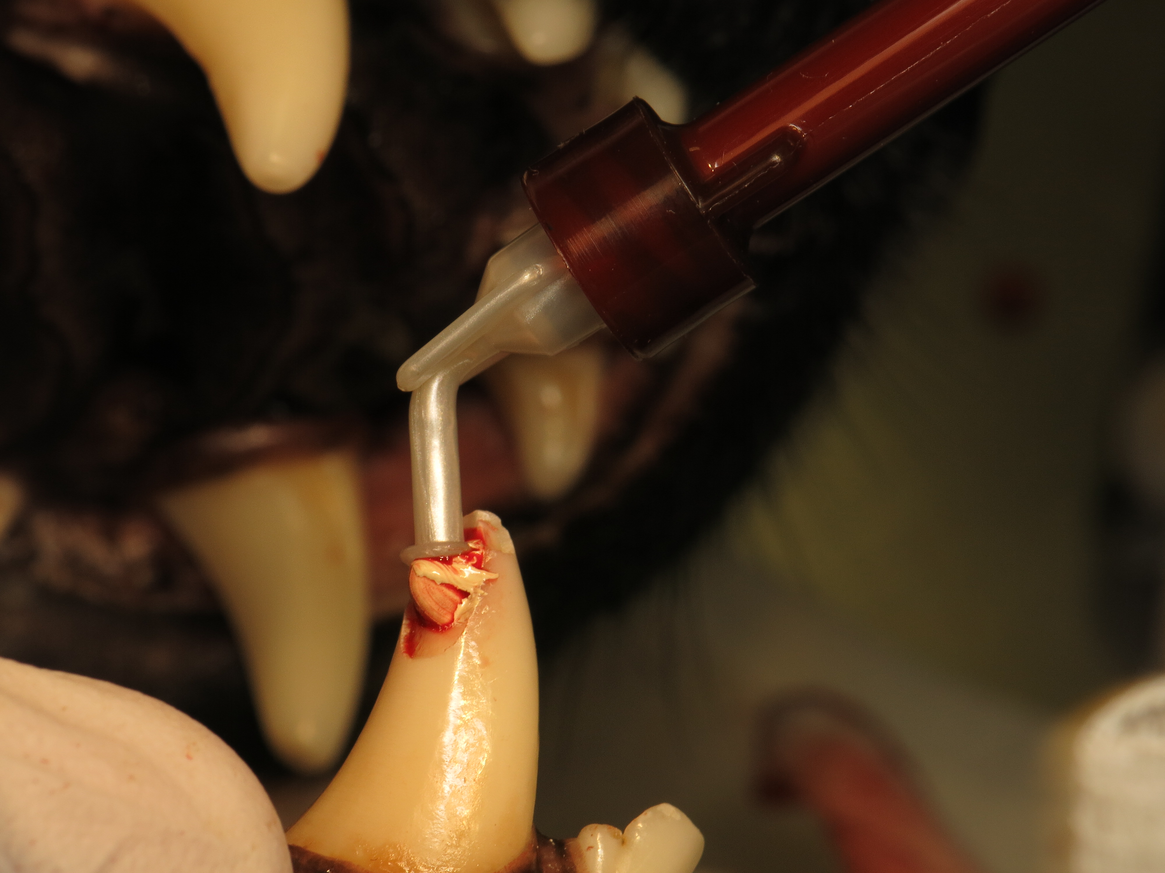 Reconstruction d’un croc de chien fracturé à l’aide d’une couronne en Zircone